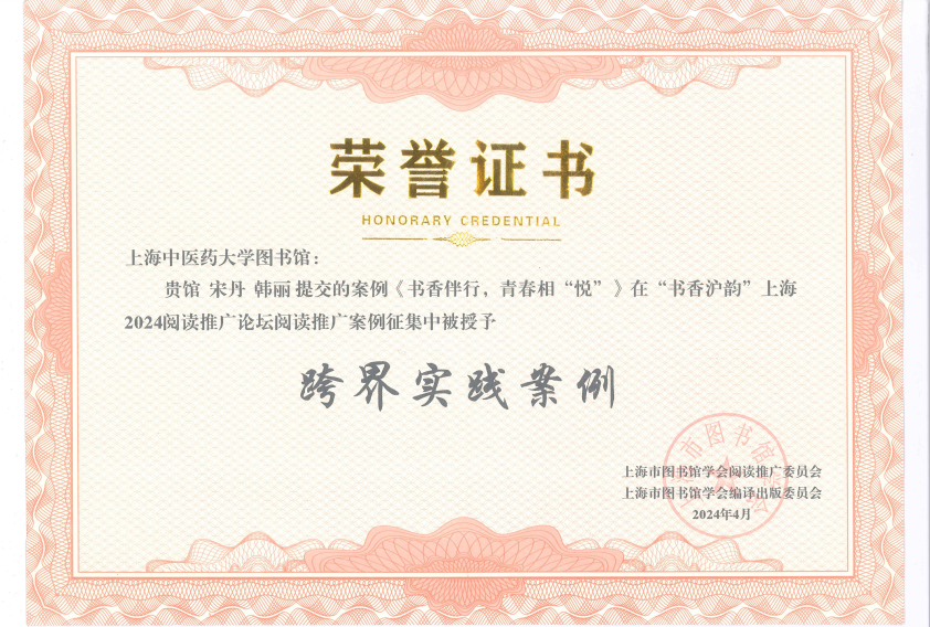 4月3日,由上海市图书馆学会阅读推广委员会、上海市图书馆学会编译出版委员会联合主办的“书香沪韵”上海2024阅读推广论坛暨上海市图书馆学会阅读推广委员会成立十周年研讨会举办。伟德图书馆阅读推广团队提交“书香伴行,青春相‘悦’——21天阅读习惯养成计划”阅读活动项目,参与会前阅读推广案例征集,经过专家评选,获授“跨界实践案例”,并在会上受到表彰。伟德图书馆认真学习贯彻习近平文化思想,坚持落实立德树人根本任务,贯彻上级党委精神,加强与学校有关职能部门、相关单位的协作,不断推出阅读活动、古籍修复体验、微讲堂、好书推送等文化活动项目,为师生们提供更多的阅读资源和更好的阅读体验,为学校文化建设作出贡献。[图书馆(杂志社)]