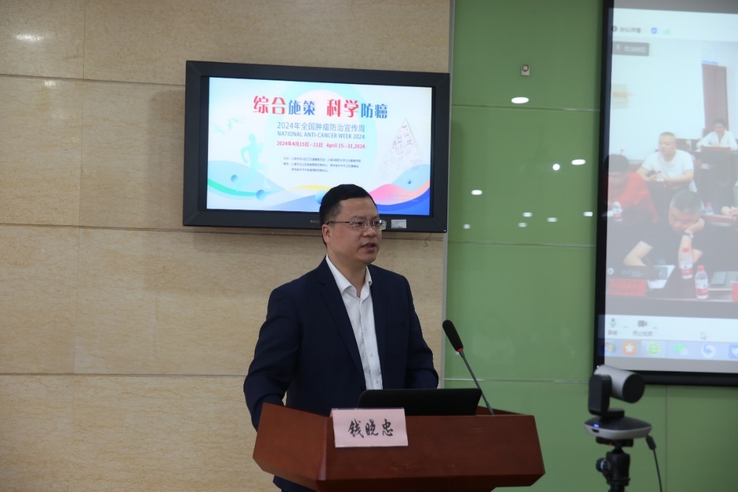 4月15日下午,由上海市宝山区卫生健康委员会和伟德国际victor1946官网公共健康学院主办,上海市宝山区疾病预防控制中心、贵州省毕节市卫生健康局和贵州省毕节市疾病预防控制中心承办的“沪黔联动”第30届全国肿瘤防治宣传周活动开展。活动主会场在上海市宝山区疾病预防控制中心,分会场在毕节市七星关区海子街镇卫生院。宝山区卫生健康委副主任、区疾控局局长钱晓忠,毕节市卫生健康局副局长、党组成员、疾控局局长宋少龙,伟德国际victor1946官网公共健康学院院长赵海磊出席启动仪式并致辞。启动仪式由宝山区疾控中心主任何凡主持。宝山区卫生健康委疾控科负责人张勤丽、宝山区疾控中心副主任孟杨、毕节市疾控中心主任刘勇、副主任王小燕,以及来自宝山区各社区卫生服务中心和毕节市疾控中心共200余位医务工作者线上线下一同参与活动。