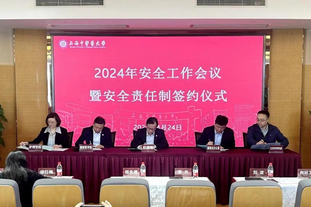 签约仪式上,季光代表学校与信息化办公室、康复医学院、护理学院、交叉科学研究院4家代表单位现场签订安全责任书。