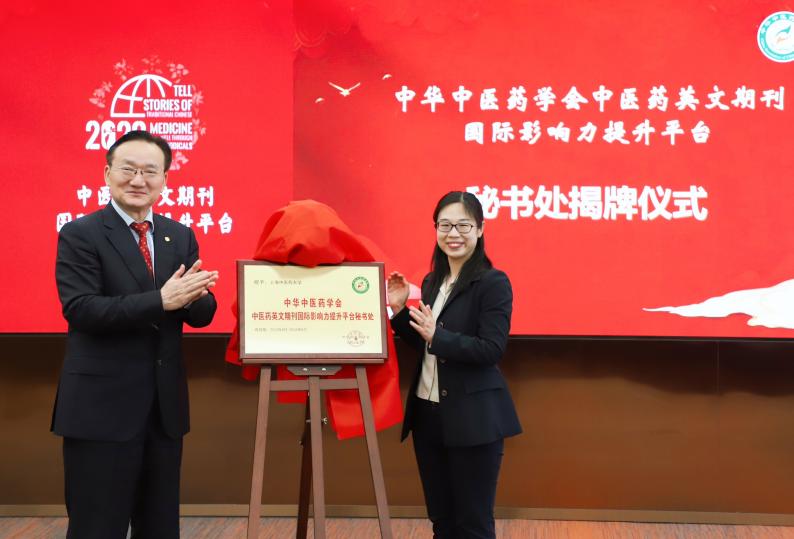 徐建光和厍宇共同为中医药英文期刊国际影响力提升平台秘书处揭牌,祝贺平台秘书处正式落户伟德国际victor1946官网。