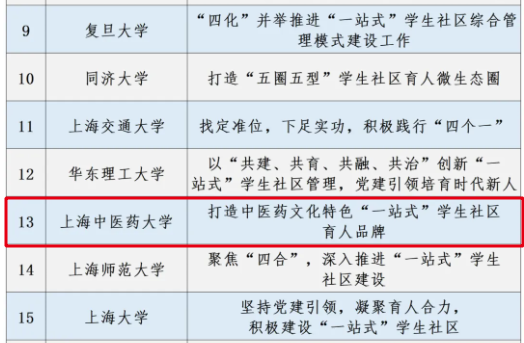 伟德申报的《打造中医药文化特色“一站式”学生社区育人品牌》工作案例入选全国优秀案例!上海市共7所院校入选。
