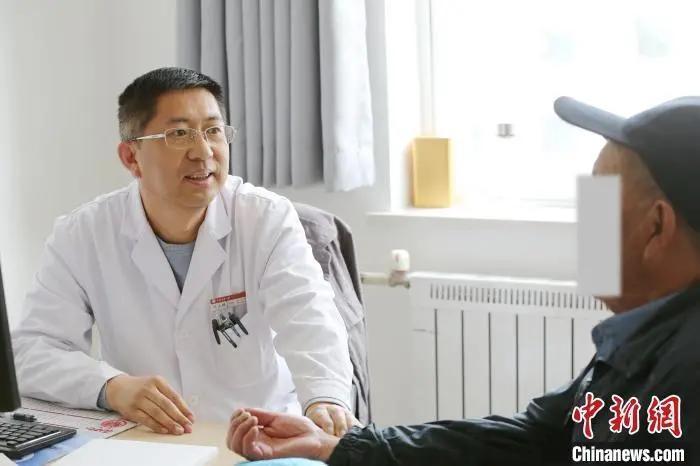 图为上海援青医疗人才、青海省中医院脑病科副主任迟大鹏接诊。张添福摄