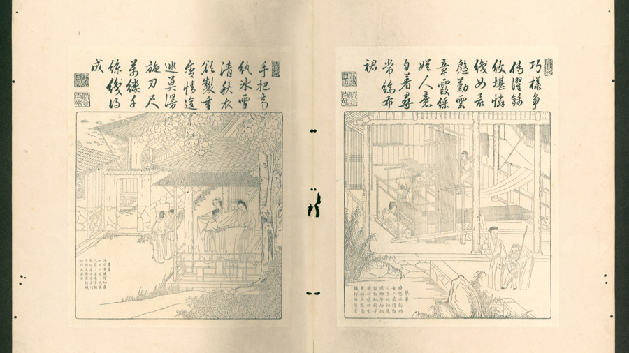 《佩文斋耕织图》(1696年)清康熙三十五年内府刊本 康熙帝玄烨题诗、焦秉贞绘图