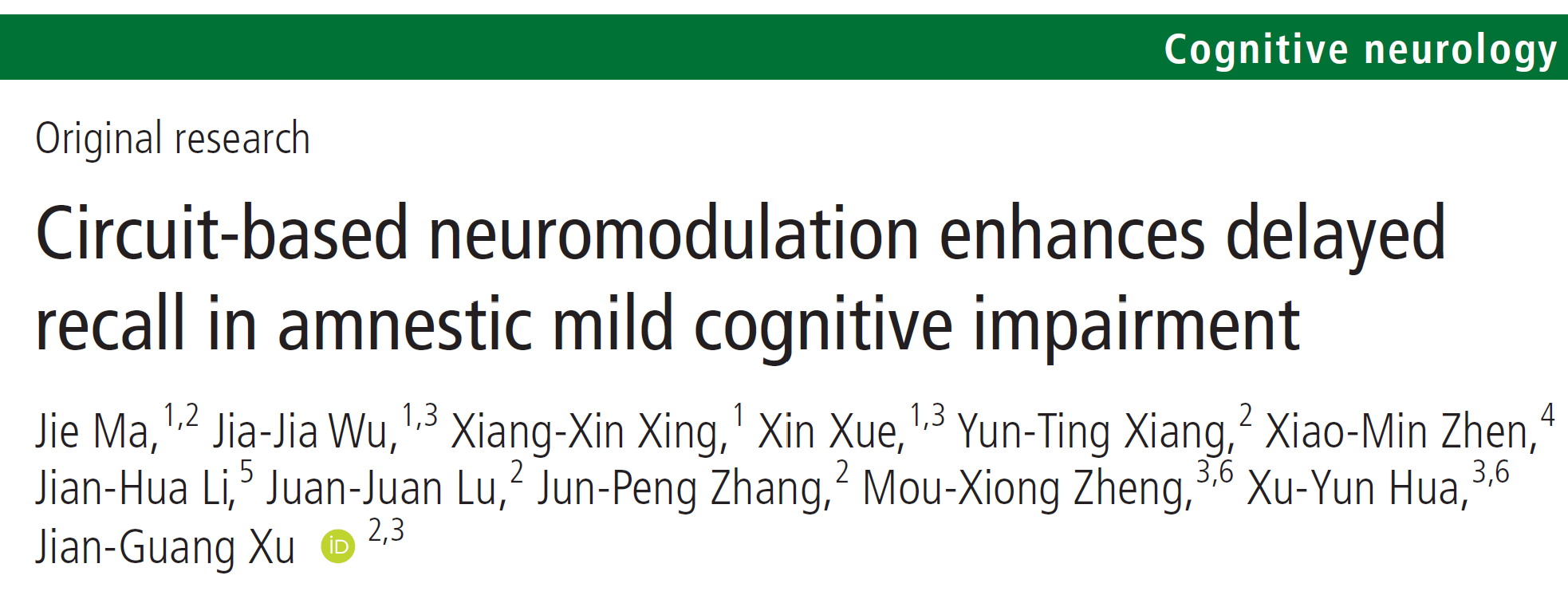 徐建光教授团队在上述研究基础上,开发基于神经环路的调控新策略,并开展了一项精准调控皮质-海马环路以改善遗忘型轻度认知障碍患者情景记忆的原创性研究。该研究基于结构约束的功能连接构建皮质-海马环路,再明确aMCI症状最相关的环路,并运用基于神经环路的成对关联刺激干预关键环路。