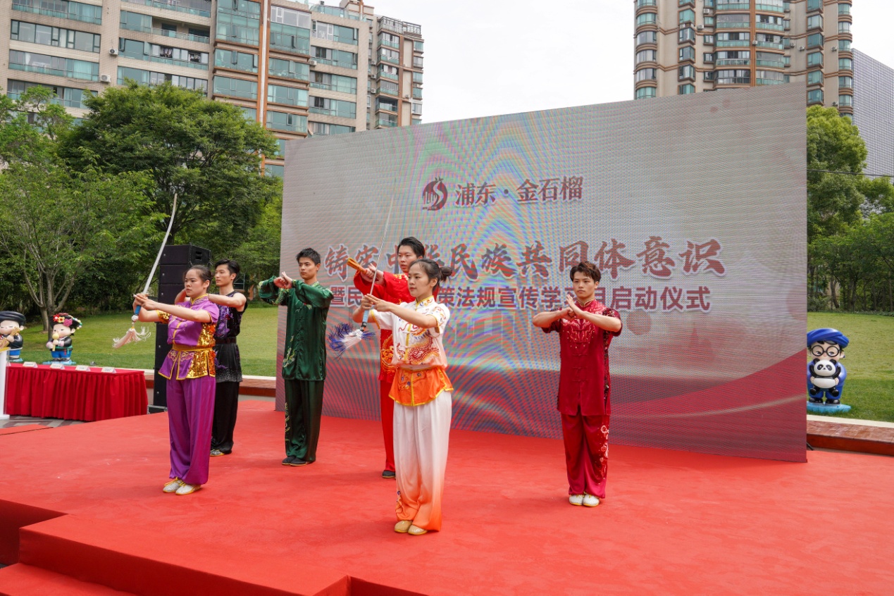 6月12日,2024年浦东新区铸牢中华民族共同体意识暨民族宗教政策法规宣传学习月启动仪式在浦东新区金石榴公园举行。伟德作为浦东新区区域共建单位,校武术队受邀参加此次展演活动。在舞台上,队员们身着武术服装,英姿飒爽,伴随着激昂的音乐,以精湛的武术技艺,为观众带来了一场视觉盛宴。武术作为中华文化的重要组成部分,是中华民族的文化瑰宝。通过校武术队的展演,为浦东新区民族宗教政策法规宣传学习月启动仪式增添了一抹亮丽的色彩。