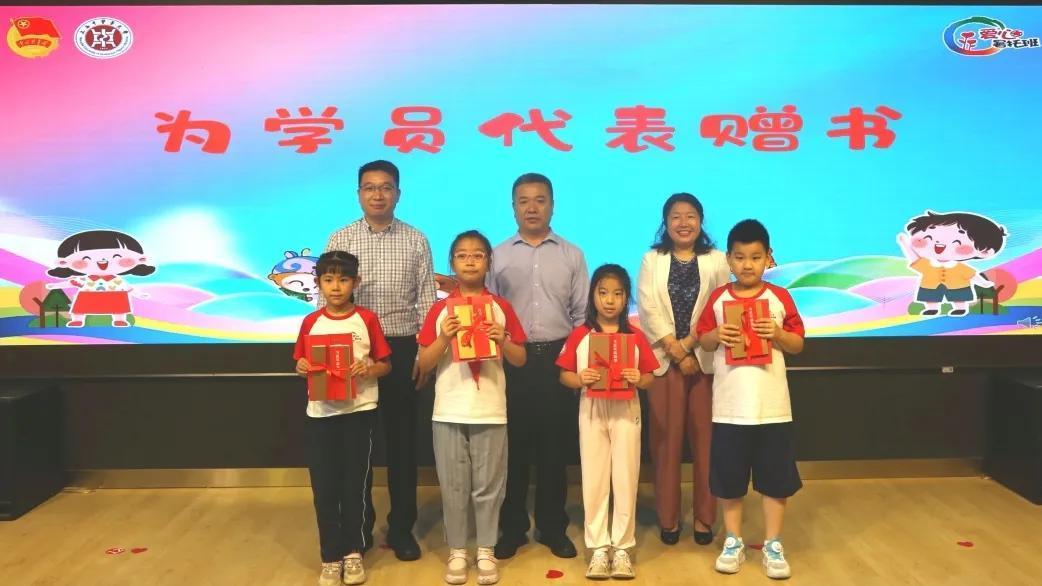 与会职能部门负责人为爱心暑托班学员代表赠书,希望小学生以书为舟,扬帆起航,在阅读中牢记领袖教诲,筑牢理想信念,从书本中汲取智慧和力量,赓续岐黄薪火。