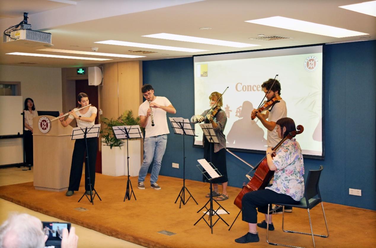 在国际交流合作中心,两校共同举办了中奥大学生音乐欣赏交流会。会前,钟力炜与Peter Riedler分别致辞。伟德民乐团成员在音乐会上精彩演绎了《盛世国乐》《茉莉花》《兰亭序》等经典曲目,用英语向外方师生介绍了民乐团以及二胡、中阮、竹笛、古筝、大鼓的特色,反响热烈。格拉茨大学乐团代表亦献上《小夜曲》《美丽的迷迭香》等优美动听的经典管弦重奏,令现场师生赞叹不已。音乐会上,双方学生不仅展示了音乐才华,更增进了对彼此文化的理解。