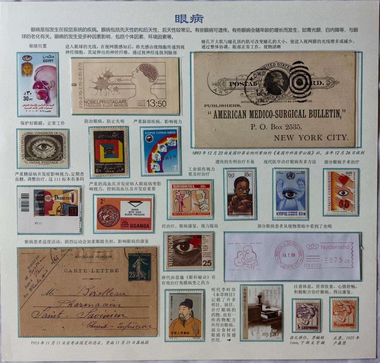 “邮票里的医学”展览由集邮专家整理提供相关邮品及说明,并结合上海中医药博物馆有关文物、邮品及艺术品共同展示给观众。其中,复旦大学附属中山医院徐汇医院消化内科主任医师张杰整理的《疟疾之源——按蚊》《眼病》《慢性肾衰竭的治疗》,以及医学集邮研究会王志华提供的《中国药用植物》《中医药堂》《药用植物加工》等主题邮票、明信片、首日封,使观众有机会透过这些珍贵藏品及其注解,纵观医学的文化传承与发展。