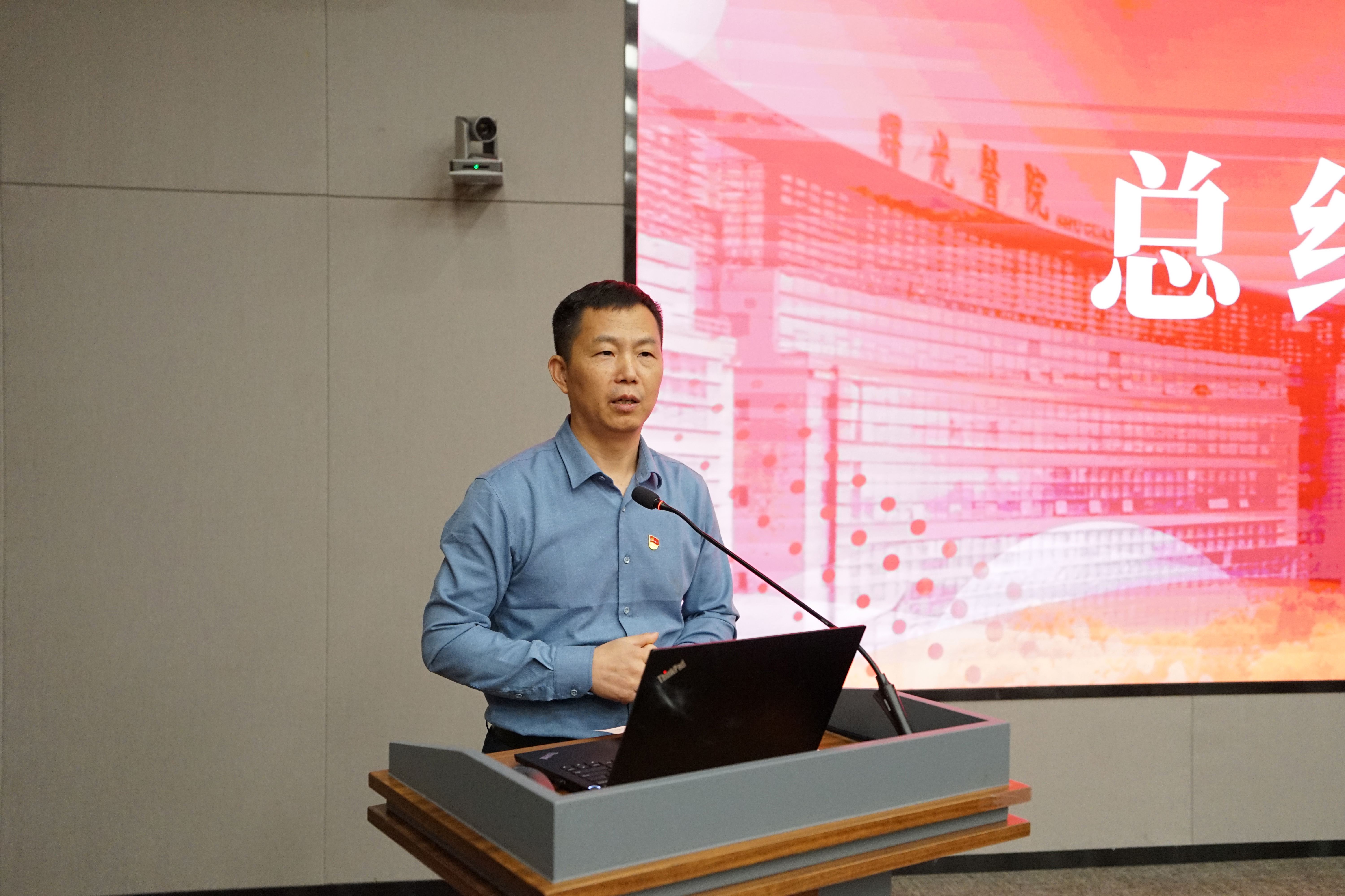 刘巍峰对曙光医院情况作了全面介绍,围绕建院历史、诊疗特色、人才队伍、优势学科、科研成果等十一个方面展开,生动讲述了曙光医院的厚重历史、中西医诊疗优势、医学研究显著成果、现代化软硬件设施、高质量社会服务。