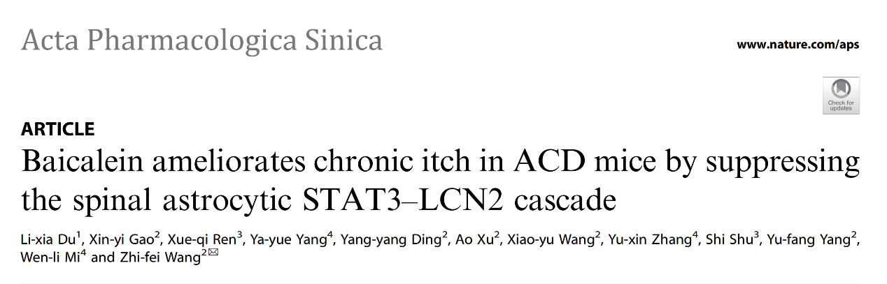 中西医结合学院王志菲团队揭示黄芩素治疗慢性痒的作用机制