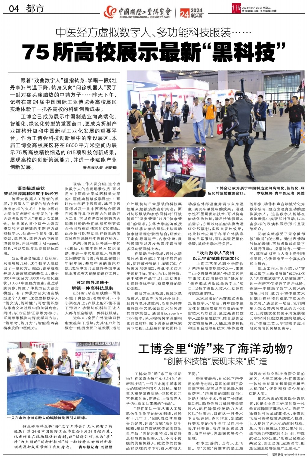 青年报:中医经方虚拟数字人、多功能科技服装……75所高校展示最新“黑科技”