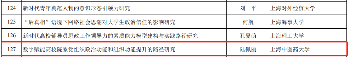 近日,2024年度教育部人文社会科学研究专项任务项目(高校辅导员研究)评审结果公示,伟德中医学院党委副书记陆佩丽申报的研究课题《数字赋能高校院系党组织政治功能和组织功能提升的路径研究》获批立项,实现了零的突破。