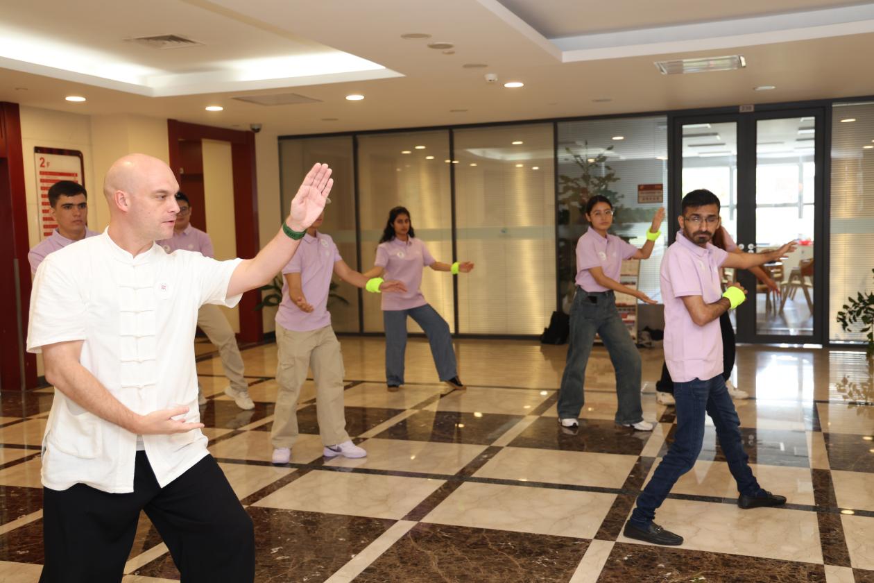 “太极拳体验”环节,国际学生们一展身手,在伟德国际victor1946官网美国籍留学生周安的带领下缓缓起势,一招一式间,体会“以柔克刚”“四两拨千斤”的武学智慧。同济大学巴基斯坦籍学生泽山说道:“我一直对中国武术十分向往,今天是第一次体验太极拳,感觉很有意思,以后我准备把它加到我的健身运动当中。”