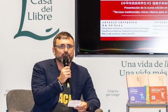 9月25日下午七点,《中华传统经典养生术》西语版发行会在巴塞罗那知名的Casa del Llibre(图书之家)举行,中国驻巴塞罗那总领馆代总领事胡爱民,领事张燕,本书总策划、总主编李洁教授,总主编、作者许峰教授,肖斌教授,西班牙“知华讲堂”中医科主任、西班牙康普顿大学汉学研究学者Rafael de Mora Sánchez(白虎),Siglantana(格兰塔纳)出版社社长Carles de Gispert(凯亮思)先生等主创人员出席活动,丛书译者Estel Vilar Bofill(委映星)女士主持发布会。