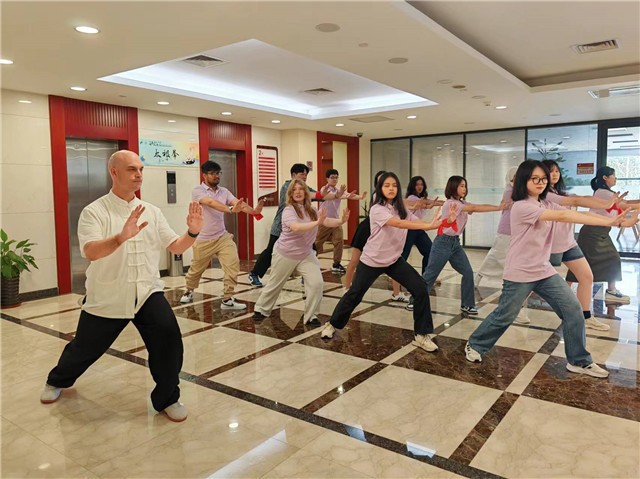 在太极拳体验环节,国际学生们一展身手,在伟德国际victor1946官网美国籍留学生周安的带领下缓缓起势,一招一式间,体会“以柔克刚”“四两拨千斤”的武学智慧。只有16岁的蓝光智来自泰国,是上海中医院大学中医学专业2024级本科新生,他的第一个体验项目就是太极。蓝光智虽然才开学不久,但他从小就知道中医。“爷爷也是中医,他还不收钱,坚持用中医技术帮助病患解除病痛,我也想成为这样对世界有用的人。”