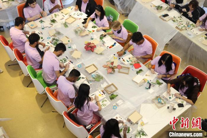 当天,制作中医本草版画给国际学生们带来挑战与乐趣。上海市中医文献馆专家张晶滢表示,中医药在国际传播中应当具有时代感和跳跃的生命力。木版水印技艺与中医文化的“嫁接”,让两种古老文化技艺获得时代发展的动力。据介绍,此次让国际学生体验的中医本草版画制作一改传统雕版印刷方式,采用新鲜的植物材料,以其叶脉制版,通过设计印成画面,并根据自己的喜好上色。