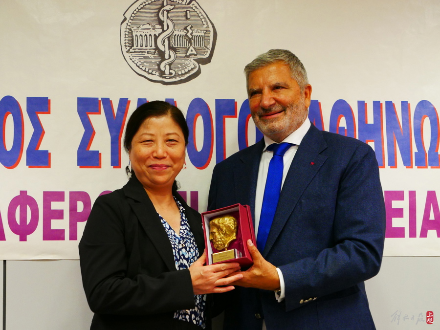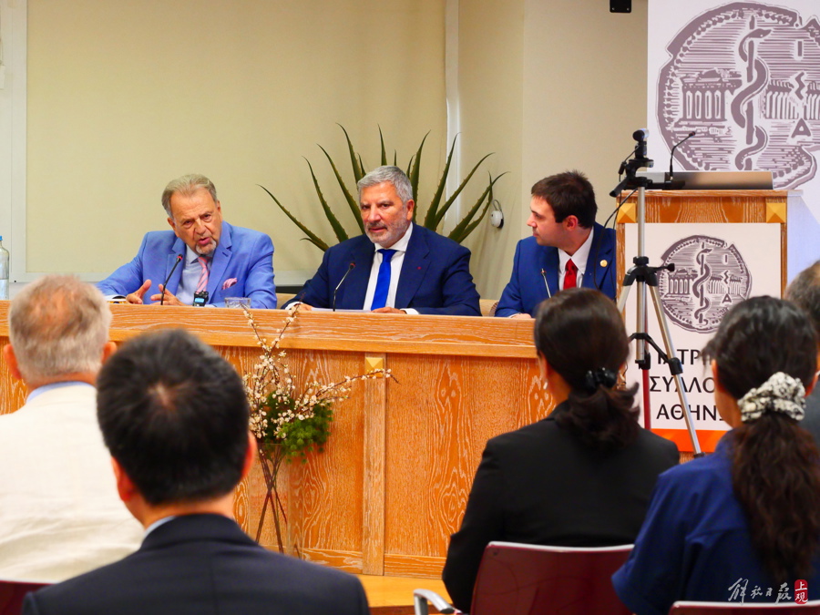此次解放健康论坛合作方也走进正值成立100周年的雅典医学会(ISA),中希双方从线上到线下深入讨论希波克拉底医学与中国传统医学异同。李洁教授应邀向希腊各地医师们专题报告“基于循证的中医传统功法在疾病预防与治疗中的应用”,雅典医学会董事会成员、希腊热医学科学院院长库斯库基斯教授则向中国同行讲解“中医在当代希腊的实践现状”。作为交流会主持人,迄今担任雅典医学会主席长达25年之久的帕图利斯博士表示,继续致力于希腊与中国这两个中西医国度之间互学互鉴、牵线搭桥。