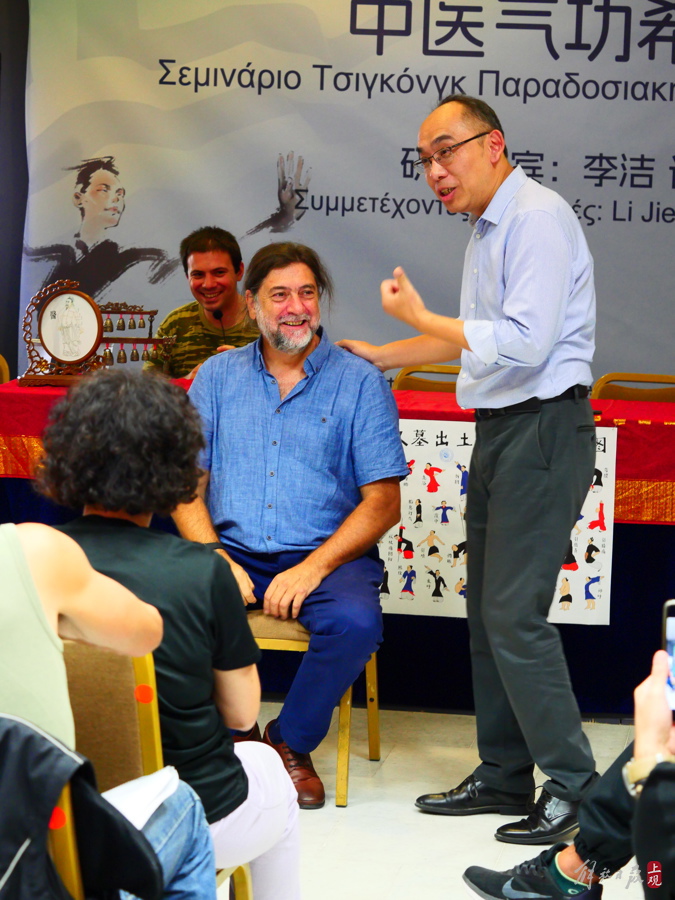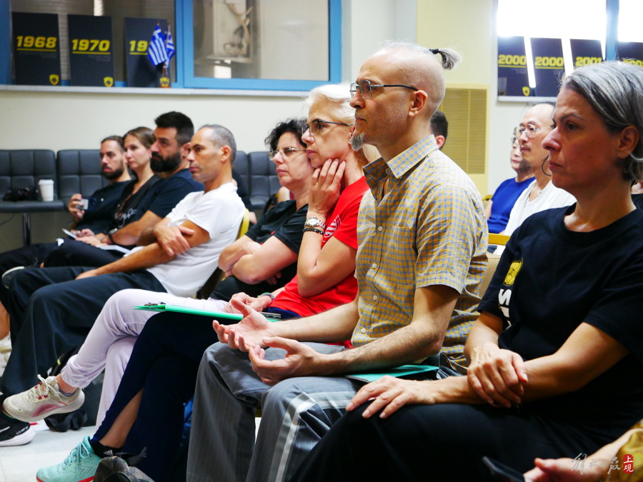 同为文明古国,希腊与中国一样拥有底蕴深厚的医学传统,古希腊名医希波克拉底成为西医奠基人,被西方尊为“医学之父”。在希腊首都,解放健康讲坛首先来到2004雅典奥运会比赛场馆,走进希腊武术功夫协会,举办中医气功希腊研讨会。伟德国际victor1946官网太极健康中心负责人李洁教授为慕名而来的希腊武术功夫协会会员们开设专题讲座,主讲太极文化促进人类健康,并与希腊针灸协会原会长、武协现任秘书长亚尼斯等共话传统医学传承和创新。