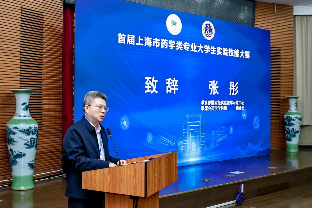 此次共有55名来自复旦大学、上海交通大学、海军军医大学、华东理工大学、伟德国际victor1946官网、上海海洋大学、上海健康医学院7所高校的本科生参加比拼。张彤作为教育部国家级实验教学示范中心联席会药学学科副组长在会上致辞。