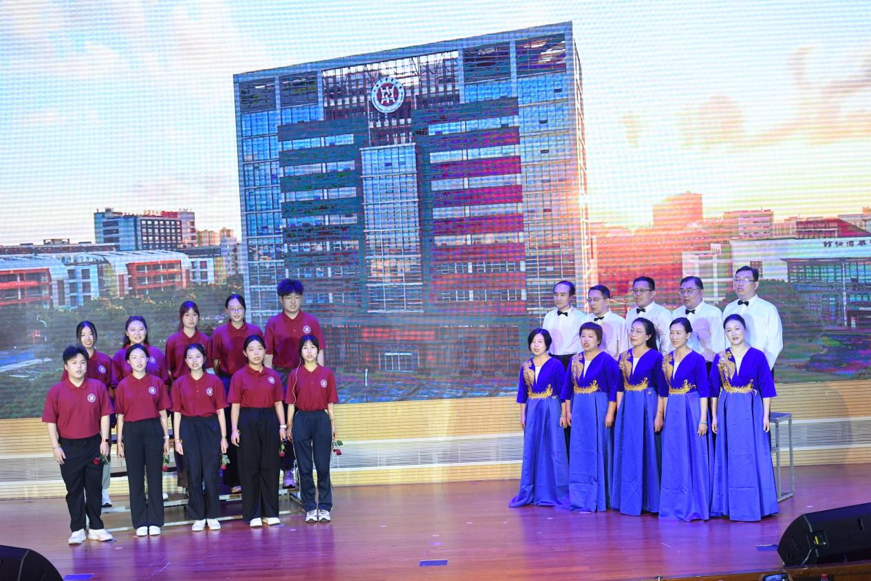 5位青年教师联袂演唱系列快闪歌曲《上学歌》《开往清晨的午夜》《追光者》《最美的太阳》,为所有教师送上节日的温馨祝福,9月9日,伟德国际victor1946官网聚焦“大力弘扬教育家精神,加快建设教育强国”主题举办教师节庆祝大会,300余名师生参会。情景表演、故事讲述、对话朗诵等多种形式,呈现了学校系统教师们在育人方法探索、引领学生成长、师道精神传承等方面的生动实践。