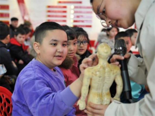 打造“讲”的队伍,在宣讲中激活传承基因。就此,伟德国际victor1946官网中医学院联合新疆医科大学维吾尔医学院开展一场别开生面的“中医药进社区”活动。“小朋友们看,脊柱就像小树苗,挺直才能茁壮成长!”在天山区二道桥街道固原巷社区,2024级中医学(五年制)学生俞悦手持3D脊柱模型,向小朋友们生动讲解了脊柱诊疗知识;博士研究生李元昊则带来了中医智能体质辨认仪,让居民们亲身体验了现代科技与传统中医结合的智能化成果。实践团还设计了“闻香识百草”“经络大闯关”等互动游戏,手把手地教孩子们认识穴位、练习八段锦。