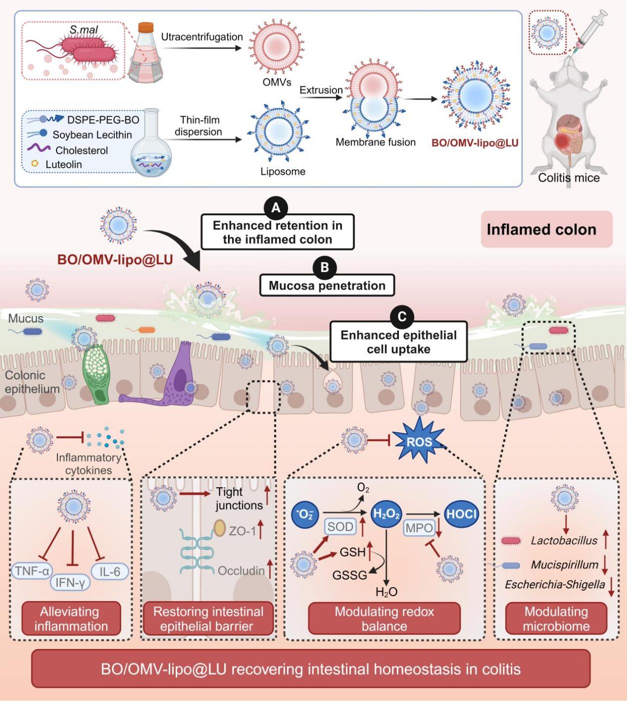 中药学院胡凯莉团队构建冰片修饰细菌外膜囊泡融合脂质体为结肠炎的靶向治疗提供新策略