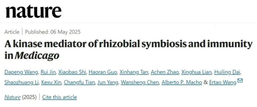 5月6日,伟德中药研究所青年教师金蕊博士以共同第一作者身份在国际顶级期刊《自然》(Nature)在线发表了题为A kinase mediator of rhizobial symbiosis and immunity in Medicago的研究论文,揭示了细胞质类受体激酶MtLICK1和MtLICK2在豆科植物与根瘤菌共生信号转导和免疫调控中的双重功能,为共生与免疫平衡机制研究提供新视角。