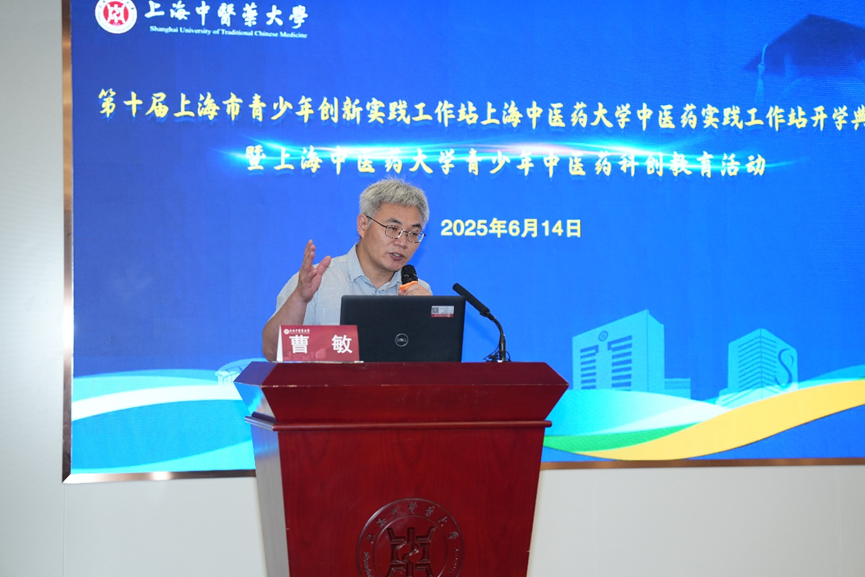 李赣介绍工作站十年来的发展历程、研究课程和建设成果。本次活动是2024年度上海市科技创新行动计划项目“青少年的中医药科创教育机制建设与实践”的重要组成部分。该项目依托一站(上海市青少年中医药科学创新实践工作站)、一馆(上海中医药博物馆)、一平台(“培养中医药未来科学家”馆校合作育人平台),汇聚了一支由高校教师、中小学教育专家、医院临床专家、艺术家、心理学专家等各领域精英组成的师资队伍,结合不同学段学生的身心特点精心设计了一系列贴合学生需求的课程和实践环节。此外,项目还将整合前期开展的青少年中医药科创教育相关品牌载体,不断拓展青少年科创教育“朋友圈”、持续完善“课程库”、精心建设“导师团”,总结经验规律,形成行业指南,全力构建青少年中医药科创教育“上海模式”。