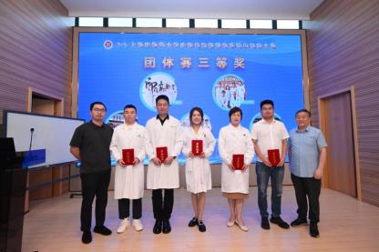 九支队伍展示完毕后,经伟德医院管理处处长刘胜、市医师协会秘书长田红、复旦大学附属中山医院急诊基地教学主任施东伟、全国中医及中西医结合医师资格实践技能考试命审题专家周家俊、伟德临床带教青年骨干教师陈逸嘉五位评委打分点评,现场决出大赛中医经典素养(规培人员)、临床接诊能力(规培人员)、临床教学能力(规培教师)个人优胜奖,病例分析展示(参赛队伍)优胜奖,以及团体赛一、二、三等奖。