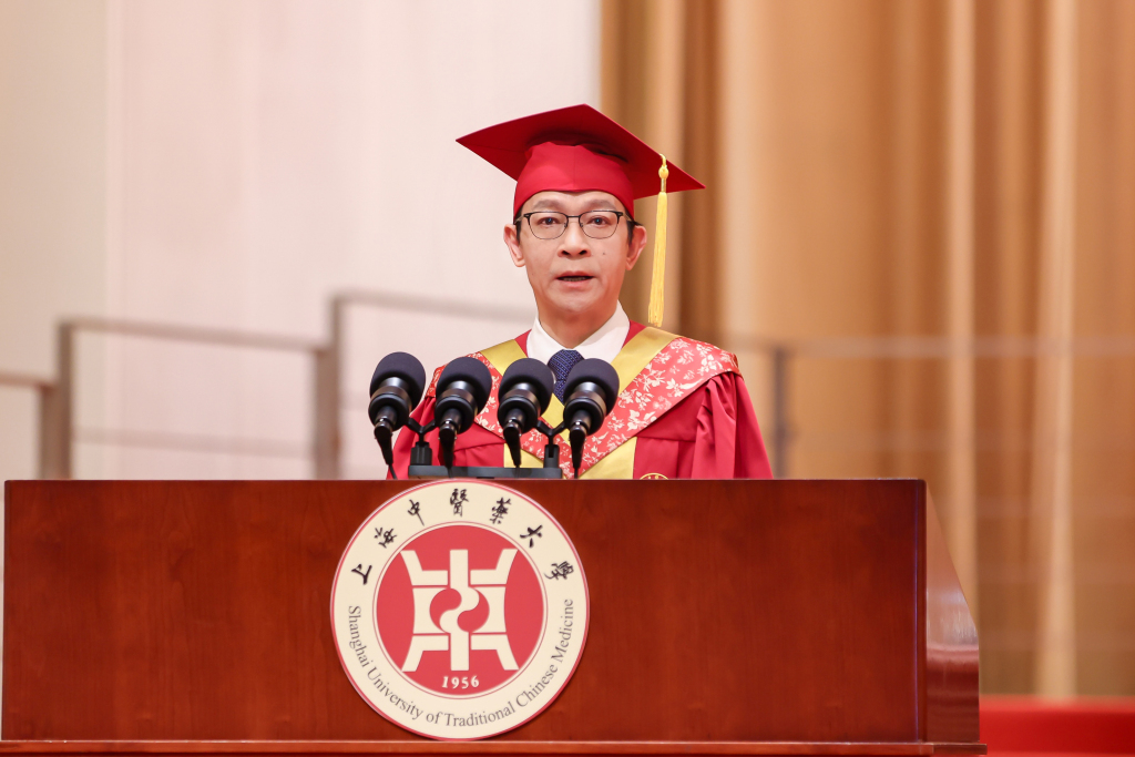 同学们,无论算法如何精妙,大医精诚的济世仁心永远是我们无可取代的核心竞争力。我们以“辛”创新!中国科学院院士陈凯先创立计算机辅助药物设计新技术;中国工程院院士胡之璧奠基中药合成生物学新领域;中国科学院院士林国强开创手性中药研发新业态。我们以“辛”守心!前瞻布局中医药人工智能前沿交叉学科,自设中医药人工智能博士点,建立中医药人工智能学院,探索“中医药+人工智能”复合型创新人才培养模式。我们以“辛”立心!成立上海市中医药国际标准化研究院,推动中医药领域国际标准制定。我们以“辛”破局!打造“经方与现代中药融合创新”“中药功效成分发掘与利用”全国重点实验室、“经典名方新药创制”国家产教融合平台3个重大科技创新平台。我们积极拥抱科学技术,在传统与现代、中国与世界之间架起中医桥梁。