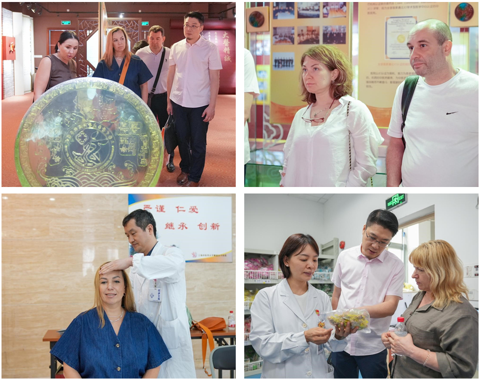 俄方代表团先后参观了院史馆、儿科、中药房,直观感受了中医药在治疗小儿呼吸、消化、神经精神疾病方面独具特色的诊疗方案和中医药外治法的运用;通过体验针灸推拿、中医传统功法以及品尝中医药特色茶饮,领略了中医药文化的魅力。