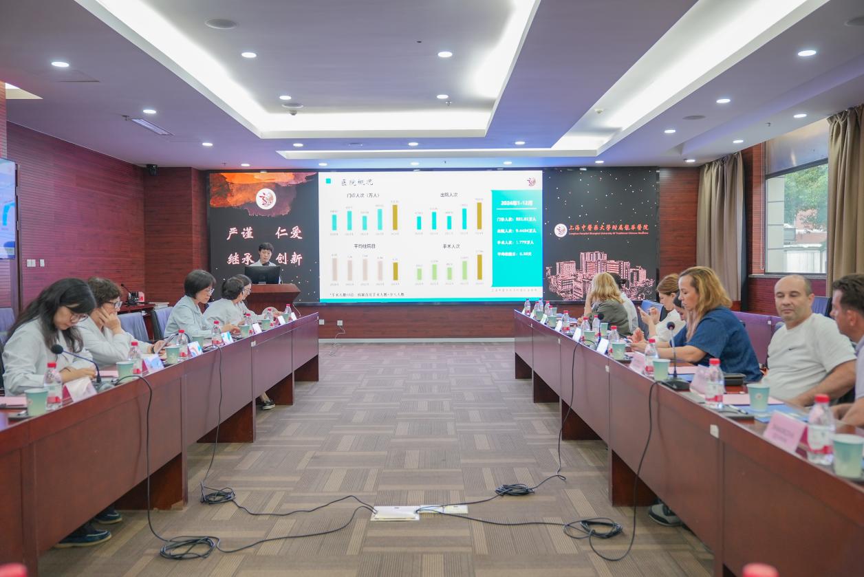 随后,俄方代表团与医院进行了座谈交流。王琛介绍了龙华医院的发展历程、医疗特色、学科建设以及国际合作情况。陈昕琳表示,中俄两国是山水相连的友好邻邦,两国在医疗卫生领域的交流合作源远流长、成果丰硕。鞑靼斯坦共和国作为俄罗斯重要的多民族地区,在儿童医疗领域拥有先进经验与突出成就,鞑靼斯坦共和国儿童医院也是全俄罗斯知名的综合性儿童医院,始终致力于儿童健康事业的创新与发展,期待通过此次交流,双方能够在建立“防治康养”儿童全周期健康管理体系方面探讨合作契机。