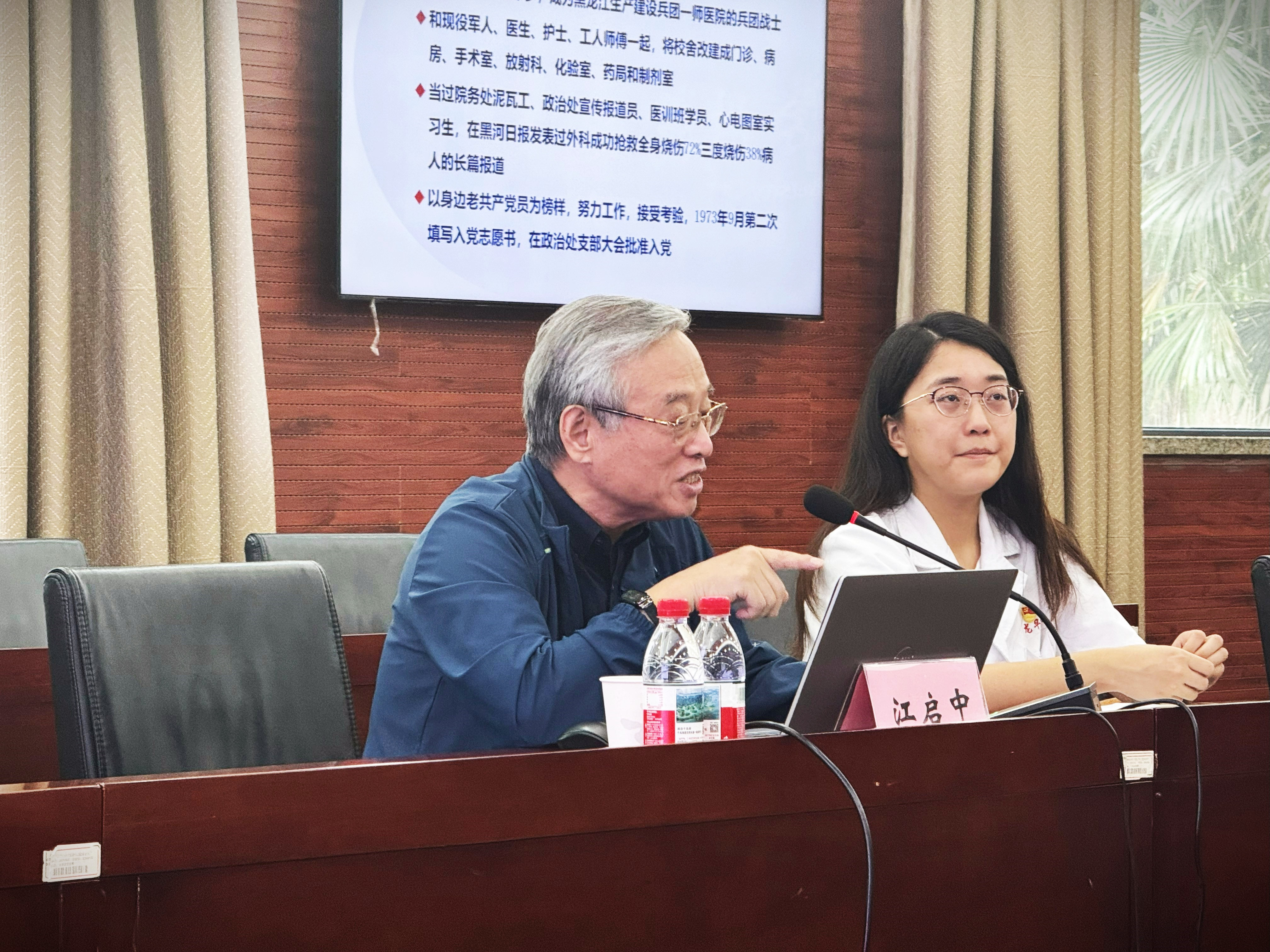本次培训班特邀优秀老党员、龙华医院原党委书记江启中与学员们开展座谈交流。江启中回顾往昔,从学生时代心怀炽热理想、积极向党组织靠拢的青葱时光,到担任医院党委书记时殚精竭虑、力推中医药特色专科建设、守护百姓健康的峥嵘岁月。让学员们真切领悟到一名优秀共产党员的使命与担当。