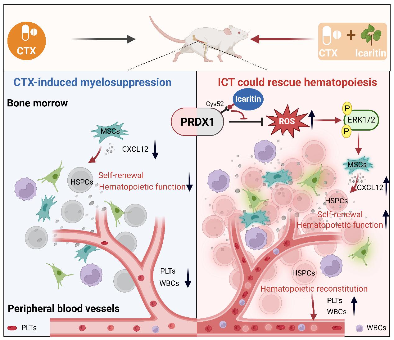 伟德交叉科学研究院团队揭示淫羊藿素靶向PRDX1-MAPK轴改善化疗后间充质干细胞的造血功能