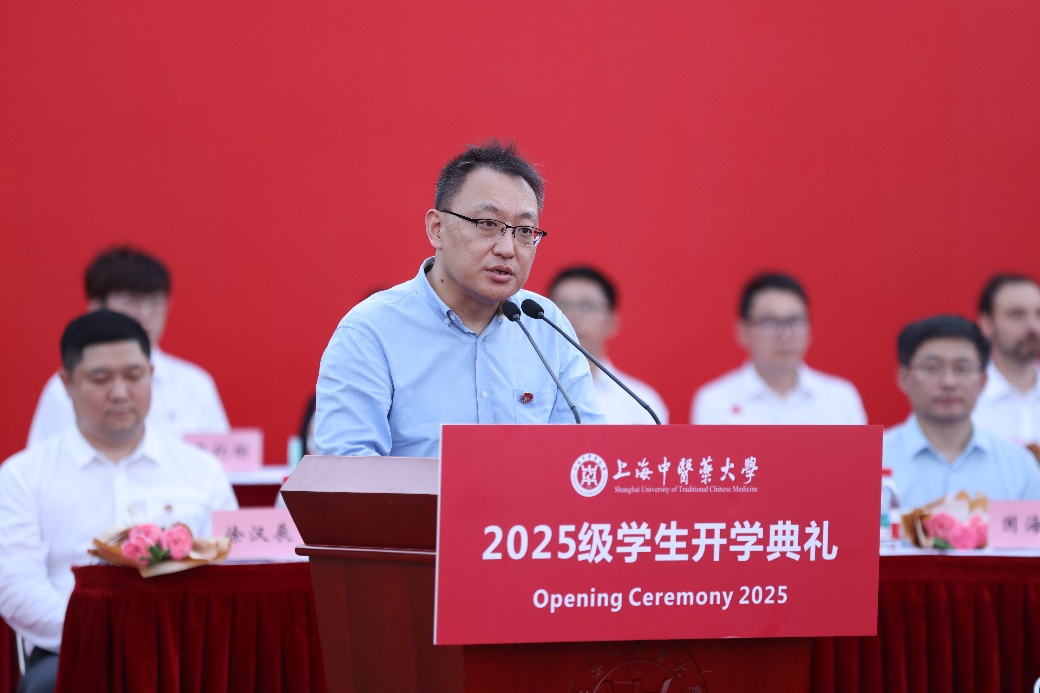1997级中医学(基础医学方向)校友、上海腾瑞制药股份有限公司创始股东、执行总裁刘扬结合自身深耕医药领域的丰富阅历,为新生们带来了一场关于成长、友情与使命的对话。他鼓励同学们以“学习”为基,专业素养与综合能力并重;以“情感”为纽带,珍惜师生恩与同窗谊;以“态度”为帆,成就“大医精诚”的人格境界;以“使命”为炬,在中医药传承创新的时代浪潮中照亮人生目标。