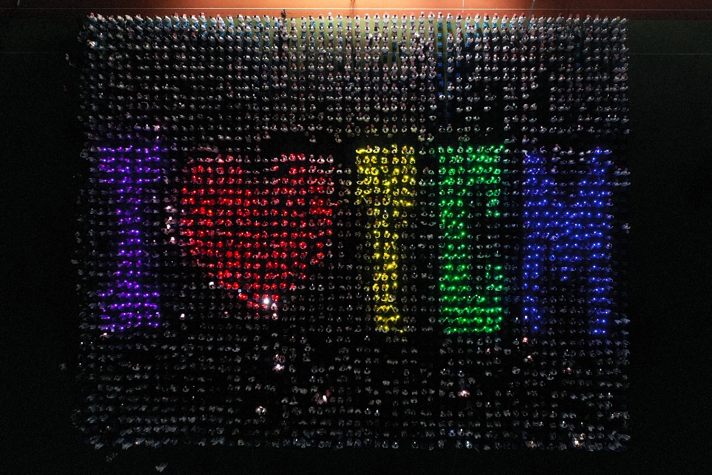 新生们在典礼现场摆出“I♡TCM”的图样,如一份用热情书写的“中医情书”,既是对专业的告白、对学校的承诺,更是对未来杏林之路上下求索的无声誓言。最后,全体师生共同唱起校歌《杏花开遍美丽的校园》,开学典礼在嘹亮的校歌声中圆满落下帷幕。