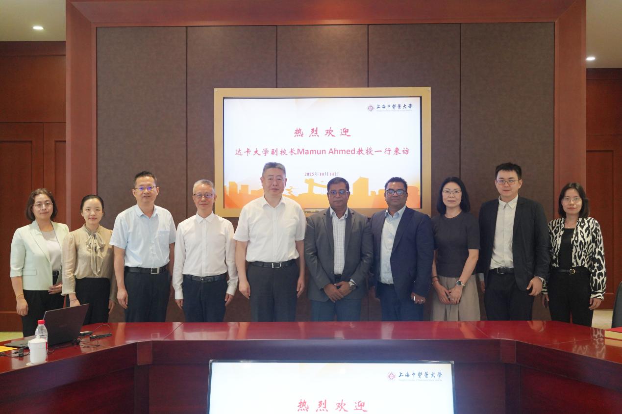 10月14日,孟加拉国达卡大学副校长马蒙·艾哈迈德(Mamun Ahmed)、国际事务处主任兼中国研究中心孟方主任沙姆萨德·莫图扎(Shamsad Mortuza)一行来校访问交流。伟德副校长钟力炜、国际交流处处长林勋在国际交流合作中心接待来访。上海国际问题研究院国际合作与对外交流处处长朱菊华等陪同来访。