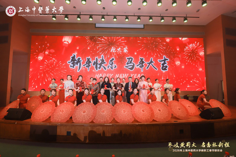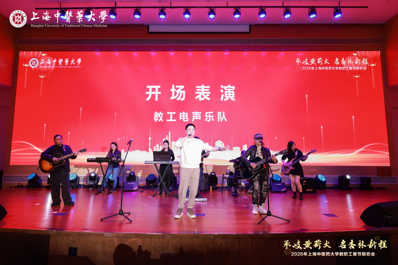 联欢会在教工电声乐队的精彩开场表演中拉开帷幕,瞬间点燃全场热情。校领导登台送上新春寄语,从传承岐黄初心、深耕人才培养、促进国际传播、攻坚学术科研、推动创新发展、服务社会民生、凝聚校园温情到擘画未来蓝图等多个维度,既回顾了学校七十载栉风沐雨的奋斗历程,也表达了对教职工的殷切关怀与美好祝愿,激励全体上中医人在新征程上砥砺前行。