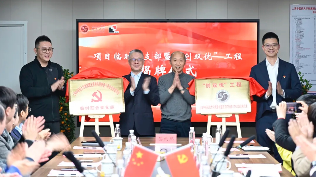 曙光医院院长林勋宣布项目“创双优”工作正式启动。与会领导共同为项目临时党支部暨创“双优”工程揭牌。项目主要参建方现场签署《廉政协议》,来自曙光医院、申康卫建、张江各级党政机关和兄弟高校的领导们代表共同签订《党建共建协议》。