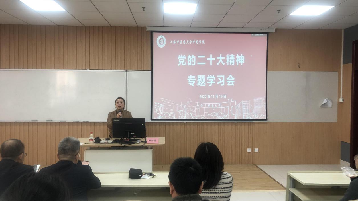 为深入学习宣传贯彻党的二十大精神,深刻理解把握精神实质和核心要义,汲取奋进力量,11月16日下午,中药学院党委邀请伟德“杏马”理论宣讲团、马克思主义学院副教授杨丽霞在10105为师生作党的二十大精神专题辅导报告。学院领导班子、全体党员和教师参加本次学习,会议由中药学院党委书记沈岚主持。