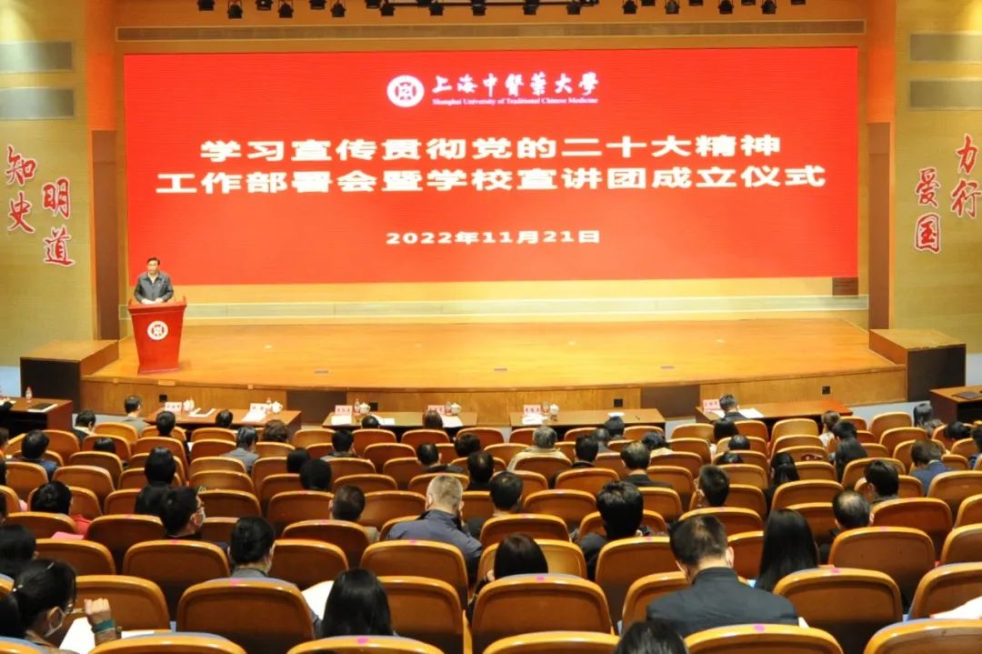 11月21日下午,伟德召开学习宣传贯彻党的二十大精神工作部署会暨学校宣讲团成立仪式。校党委书记曹锡康对学校系统学习宣传贯彻党的二十大精神的实施方案进行了全面部署。校党委中心组成员,教师党支部书记、青年教师班主任、马克思主义学院教师,“杏马”理论宣讲团、“星火”大学生红色精神宣讲团成员在图书馆裙楼四楼报告厅主会场参加会议。校党委副书记、纪委书记许铁峰主持会议。