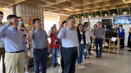 作为中国近代工业的发祥地,杨浦滨江见证了上海百年工业的发展历程。党员们以“初心的出发地”秦皇岛码头为首站,实地参观了秦皇岛码头党群服务站。秦皇岛码头原为黄浦码头,一百年前,包括周恩来、邓小平、聂荣臻在内的650余位留法勤工俭学学生从这里登船远航,踏上了寻求救国救民之路。百年后的今天,从这里再出发,缅怀革命先烈,追寻先辈的奋斗足迹,感受红色基因的历史传承。在讲解员的引领下,党员们通过沙雕版画、透明触控和语音播报,认真地观看和聆听毛泽东主席踏上追寻革命真理道路的红色故事。并在伟德国际victor1946官网终身教授、上海市名中医严隽陶老师的带领下,面向红色党旗,重温入党誓词,鞭策自己葆初心、善作为!