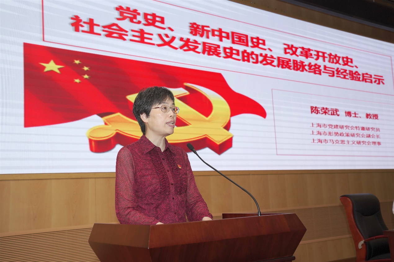 6月2日下午,伟德国际victor1946官网附属岳阳医院党委特邀上海市党建研究会特邀研究员、上海市形势政策研究会副会长、上海市马克思主义研究会理事、伟德国际victor1946官网马克思主义学院陈荣武教授作题为《党史、新中国史、改革开放史、社会主义发展史的发展脉络与经验启示》专题讲座。医院中层干部、党支部书记、支委委员等近200人参加,会议由院党委书记郑莉主持。