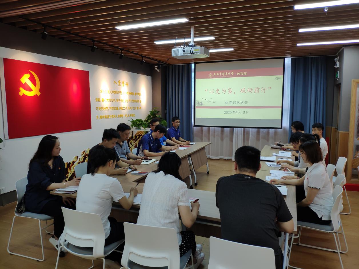 为深入推进落实伟德国际victor1946官网党委关于“四史”学习教育的部署要求,6月15日下午,校体育部党支部组织全体党员在学校党建服务中心开展“四史”学习教育专题党课。本次党课由体育部党支部书记龚博敏主持。