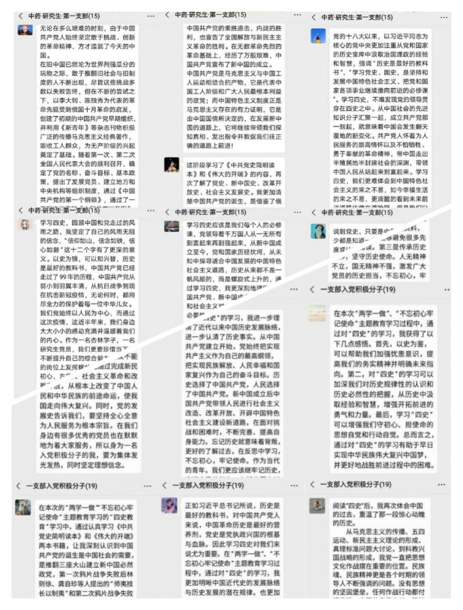 主题党日活动以线上学习交流的形式开展,中药学院研究生第一党支部党员和入党积极分子认真领会讲话精神,学习《中国党史简明读本》和《伟大的开端》。