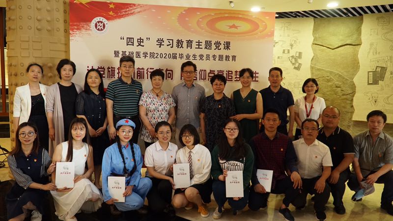 曾在井冈山大学求学多年的博士生党员王瑜分享自己屡次跟随老师参观井冈山革命根据地的体会和曾为红军战士的爷爷参加抗美援朝、保家卫国,为中国革命抛头颅、洒热血的故事。她动情地说:“作为年轻党员,要继承革命先辈的夙愿、发扬伟大的革命精神;作为中医诊断学专业的博士生,要充分发挥专业优势,坚持创新思维,担起‘传承精华,守正创新’的时代使命!”基础医学院2019级硕士生解天骁和2017级硕士毕业生党员胡婷现场朗诵毛泽东于1930年1月创作的《星星之火,可以燎原》,再现井冈山见证的峥嵘岁月及革命先辈的坚定信仰,诠释“坚定信念、艰苦奋斗、实事求是、敢闯新路、依靠群众、勇于胜利”的井冈山精神。越是艰苦卓绝的环境,越是需要坚定理想信念。基础医学院党委为每位毕业生党员赠送《共产党宣言》,希望他们从中汲取信仰力量向着伟大梦想阔步前行。学院教师党支部书记们在这本经典著作的扉页上赠言:“知史爱党,知史爱国。为党旗增辉,为人生添彩。”