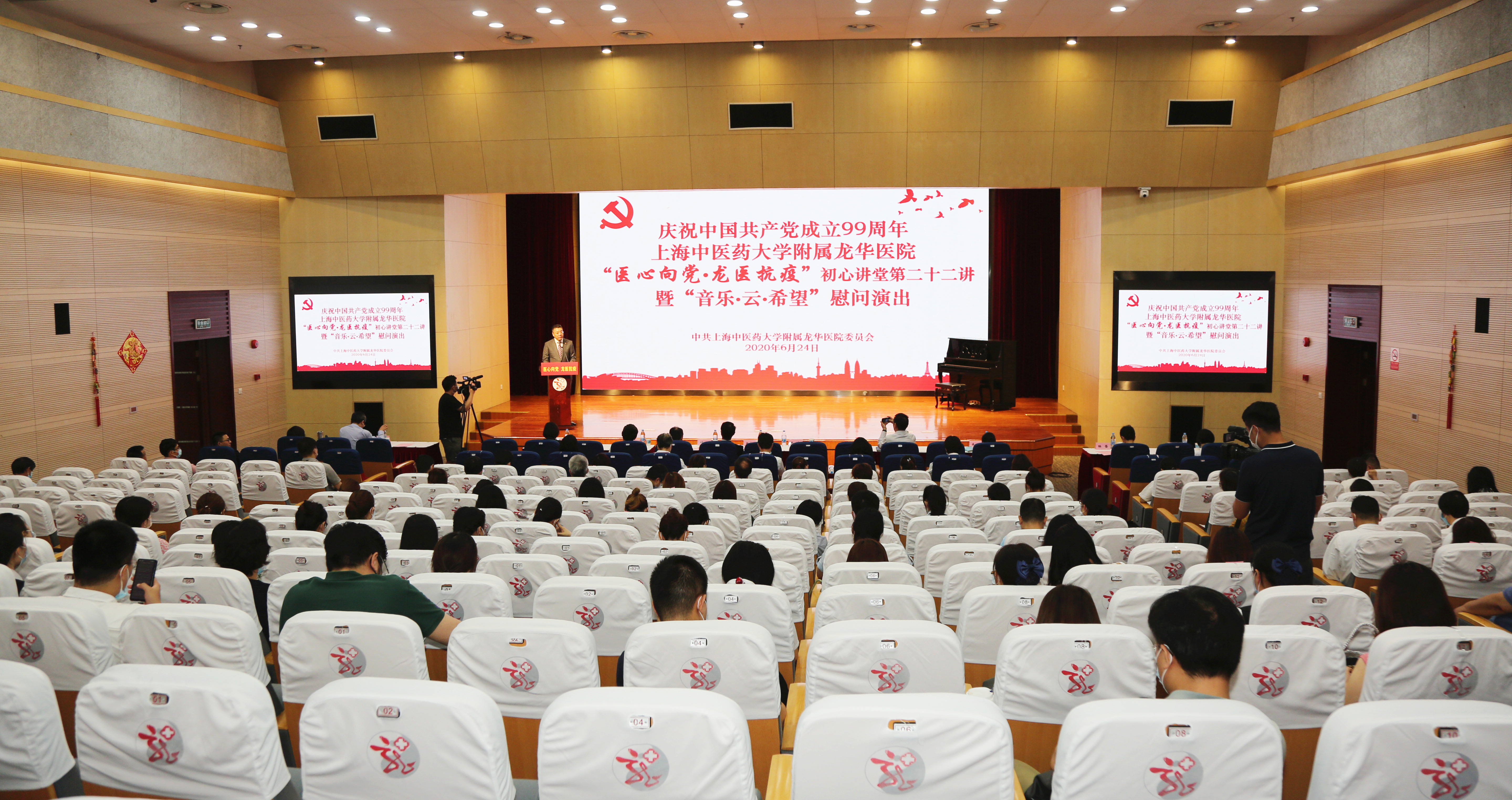 6月24日,为庆祝中国共产党成立99周年,附属龙华医院“医心向党•龙医抗疫”初心讲堂第二十二讲暨“音乐•云•希望”慰问演出在龙华医院远志楼三楼会议室举行。伟德副校长杨永清,上海爱乐乐团、上海师范大学人文学院、工商银行上海市徐汇支行、龙华烈士纪念馆等多家党建共建单位领导,龙华医院党政领导班子、职能科室负责人、支部书记及党员代表、民主党派及统战团体代表等近150人参加现场会议。特殊时期,本次大会采用了线上线下相结合的方式,广大党员、学生、职工、党建共建单位成员等3700余人通过网络直播在线听课。