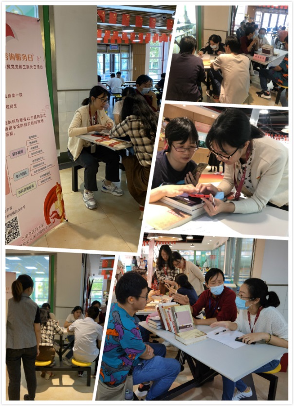 9月24日中午,图书馆党总支图书情报党支部结合本支部党员的岗位特色,以师生为中心,以需求为导向,开展读者现场咨询主题党日活动,广泛征求师生意见,从而提供精准服务,实现为师生服务的根本目标。
