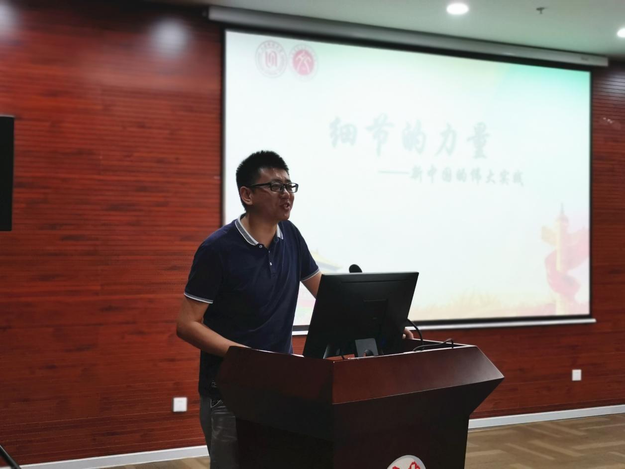 本次读书会特邀上海师范大学人文学院领航理论宣讲团负责人、学院团委副书记李墨作《细节的力量——新中国的伟大实践》一书的读书指导。李墨首先介绍了此书的作者、框架和主要内容,随后从“小平,您好”“习大大,辛苦了”两个部分详细论述了新中国诸多“大事件”中的“小细节”,解读多个新中国历史事件,并结合自身在山区支教的经历,讲述了中国脱贫攻坚战的战略意义。