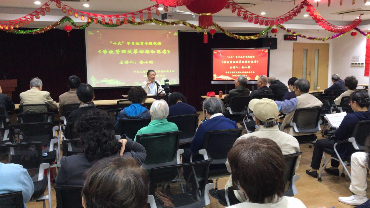 10月19日上午,伟德退休党委在零陵路校区203会议室开展“四史”学习教育专题党课活动。伟德原副校长余小明作题为《学校管理改革回顾和思考》的党课,80余位退休党员参加。会议由退休党委书记顾家柱主持。